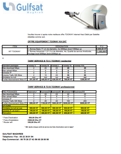 Solutions offertes par Gulfsat Maghreb